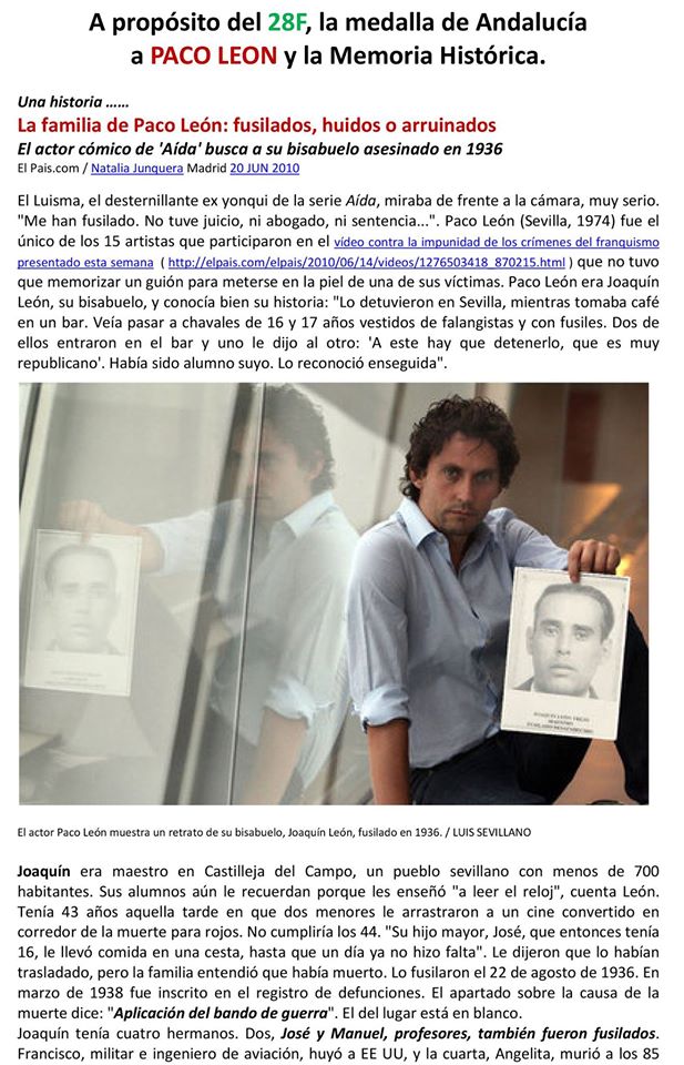 si miramos aquella época…sin tener en cuenta la realidad social de entonces…una sociedad agrícola…con esclavitud casi,,con sueldos míseros y escasos con una parte de la sociedad queriendo mantener sus privilegios de poder…econòmico,político y cultural…sobre otra explotada,arrinconada cultural,política y económicamente….y para mantener estos privilegios rompo una estabilidad social …ya de por sì…bastante delicada…utilizando argumentos de salvar la patría y para esto doy un golpe de estado..y doy lugar a una guerra ,,,apoyada desde antes de,,,por los fascismos italiano.alemán y portuguès…con la declaración por parte de las democrácias del tratado de no intervención,,,con la llegada del estalinismo,,,bastante avanzada la guerra ,,,y con el abandono por parte de los aliados, tras finalizar la segunda guerra mundial en manos de una dictadura, que ejecutò y encarcelò a una parte importante de la sociedad española de aquel entonces….retrocediendo la sociedad española a limites aberrantes con recortes de libertad individual,colectiva.social,cultural,económica,polìtica,religiosa….y màs…todo esto ,,,no tiene justificaciòn,,,humana ni moral..por muchos errore que hubiera cometido el regimèn vigente….es decir …el legal…el elegido,,por el pueblo con sus aciertos y errorespero con una clara vocación transformadora..todo lo contrario a lo que se estableciò a partir del final de la mal llamada guerra civil….